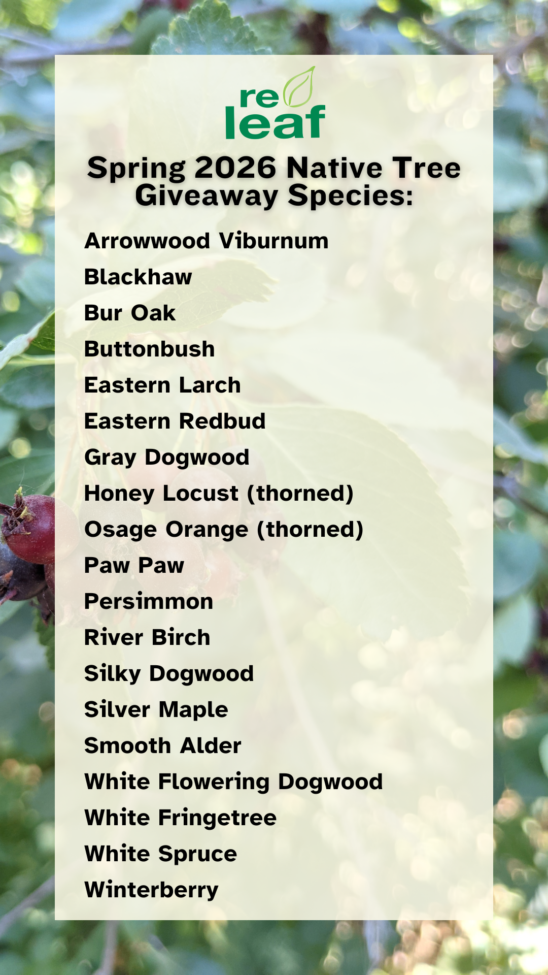 - $3-4 / Tree: Funds a possible 2026 Fall Tree Giveaway.